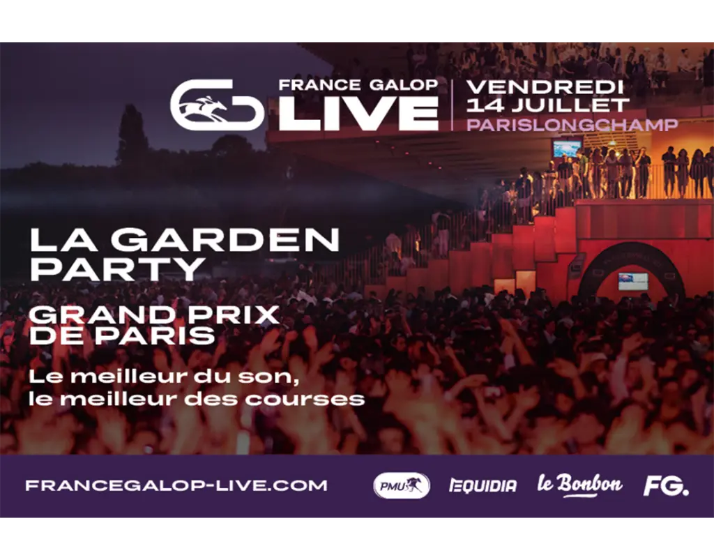 On Friday 14th July, France Galop Live is rolling out a unique and original programme in the heart of the Bois de Boulogne: exceptional races run by the best flat horses and jockeys, open-air DJ sets so you can dance the night away, entertainment you can enjoy with your friends, and an outdoor food garden where you can have a bite to eat and a refreshing drink!